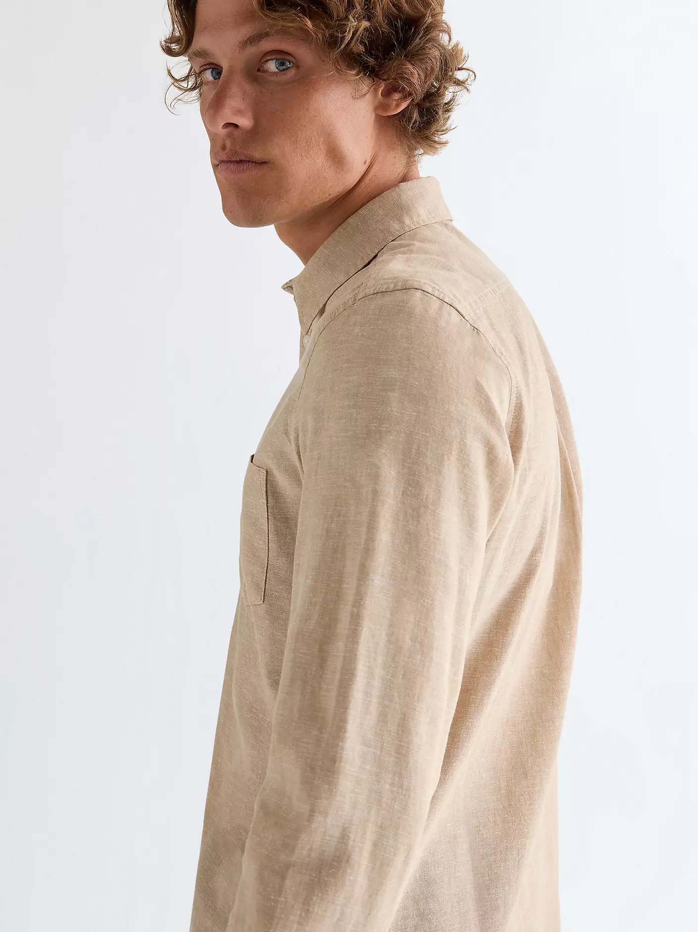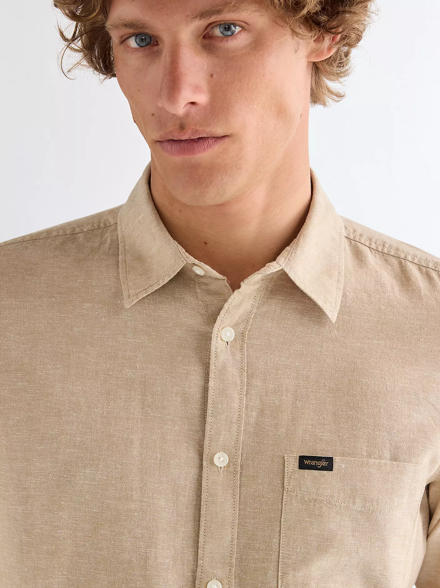 Το One Pocket πουκάμισο μας σε μπεζ της άμμου απόχρωση αποτελεί βασικό κομμάτι κάθε γκαρνταρόμπας, με ανανεωμένο branding της εταιρίας. Μείνε δροσερός και άνετος από το πρωί έως το βράδυ με αυτό το μακρυμάνικο πουκάμισο, αναβαθμισμένο αυτή τη σεζόν με σύγχρονες λεπτομέρειες. Μπορείς να το φορέσεις με τα μανίκια κατεβασμένα ή γυρισμένα προς τα πάνω, χάρη στα κουμπώματα που επιτρέπουν να προσαρμόσεις το στυλ όπως θέλεις. Διαθέτει Regular-Fit εφαρμογή για άνεση όλη μέρα. Κατασκευασμένο από απαλό και διαπνέον συνδυασμό βαμβακιού και λινού υφάσματος απλής ύφανσης, ώστε να σε κρατά δροσερό τις ζεστές ημέρες. Ολοκληρώνεται με μία τσέπη στο στήθος, πλήρες κλείσιμο με κουμπιά, καμπυλωτό τελείωμα και μανσέτες με κουμπιά.